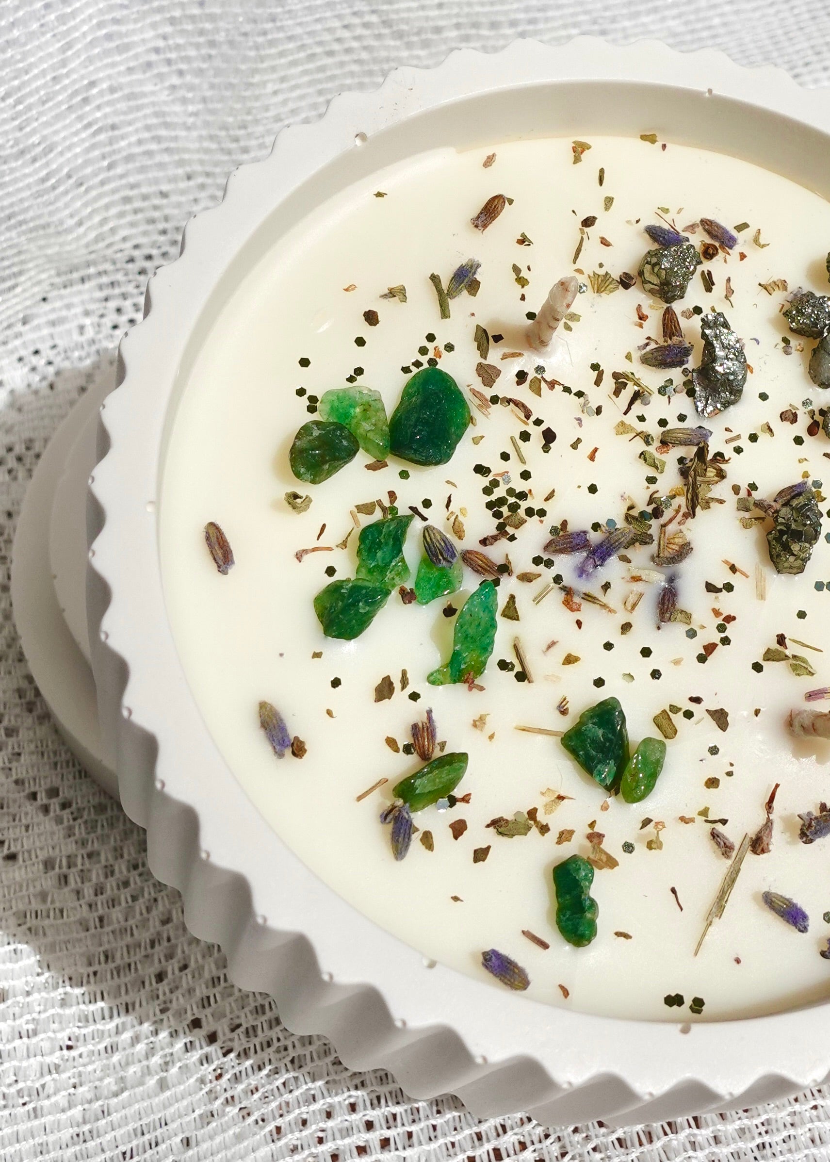 À chaque bougie son intention, porteuse de sens & d'amour de part ses cristaux & plantes séchées ♡