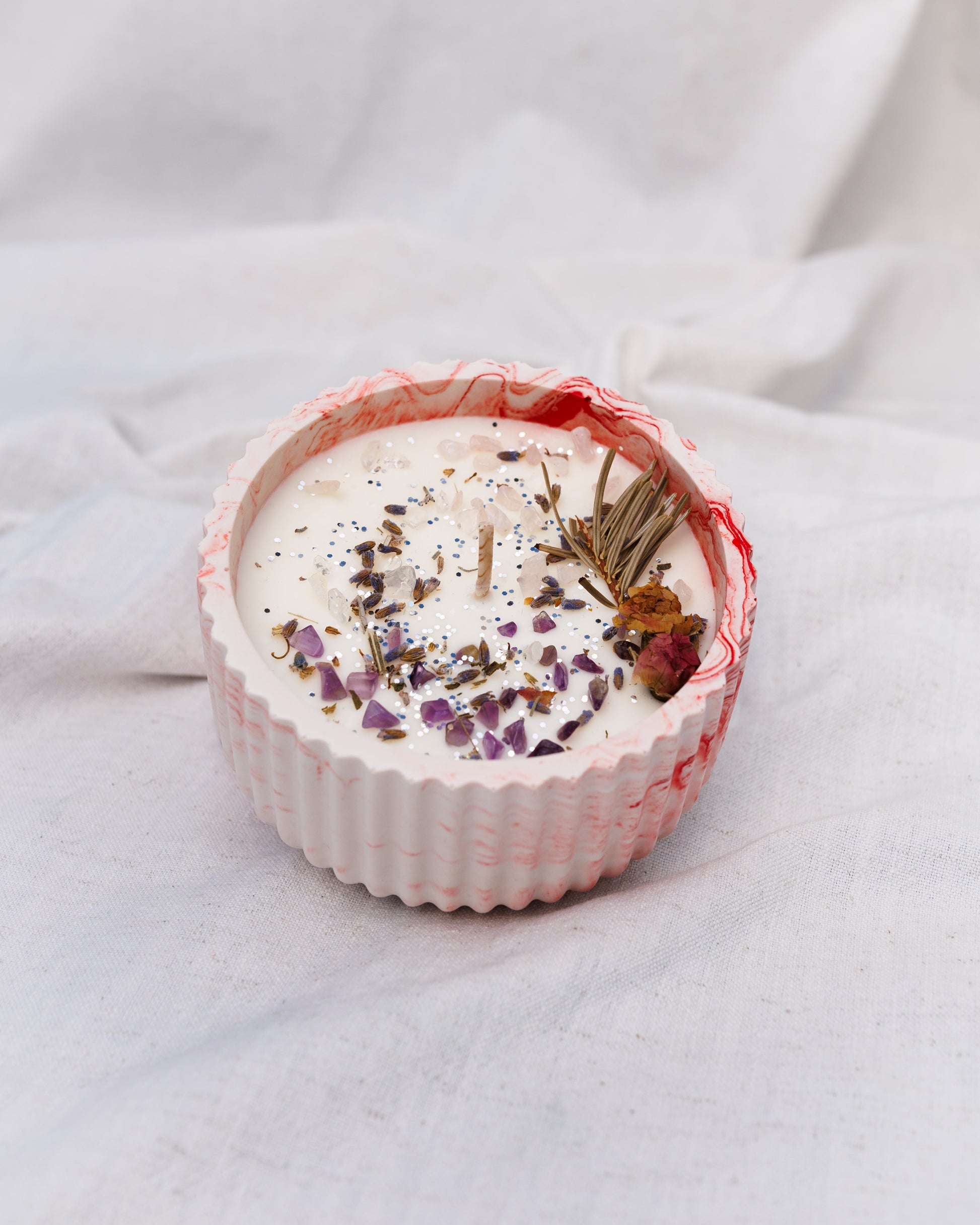 Tout dans cette bougie cultive et accentue l’amour que l’on s’apporte à soi. Aussi bien dans les plantes présentes comme la lavande, qui amène harmonie et équilibre, le pin, connu pour aider à vivre un bonheur sans complexe, avec un esprit plus libre, et la rose, qui renforce et équilibre le chakra du coeur, ouvre à l’amour universel et à la tendresse.