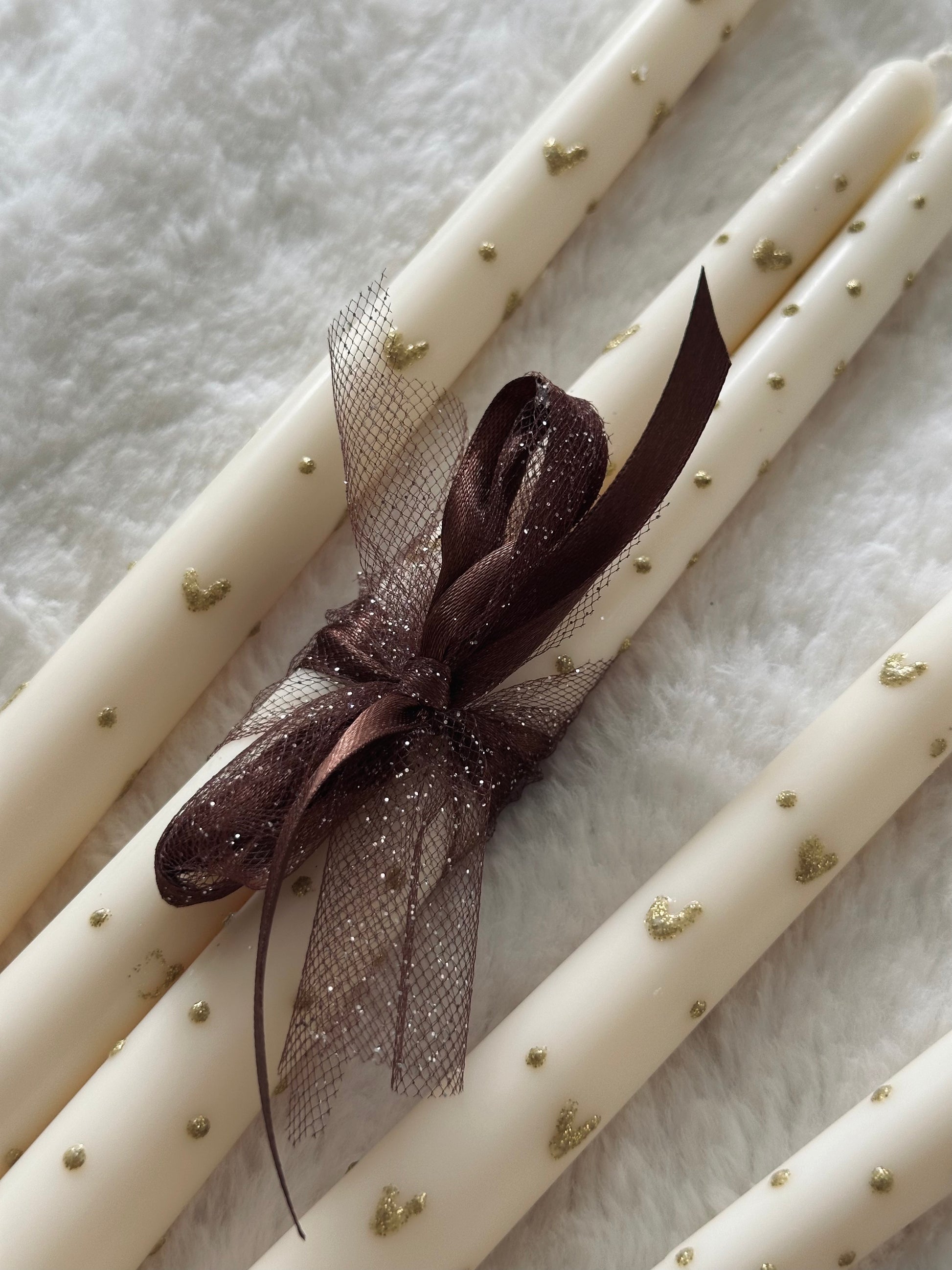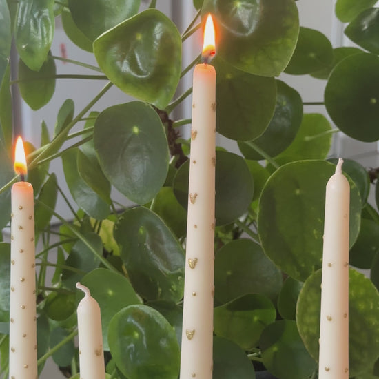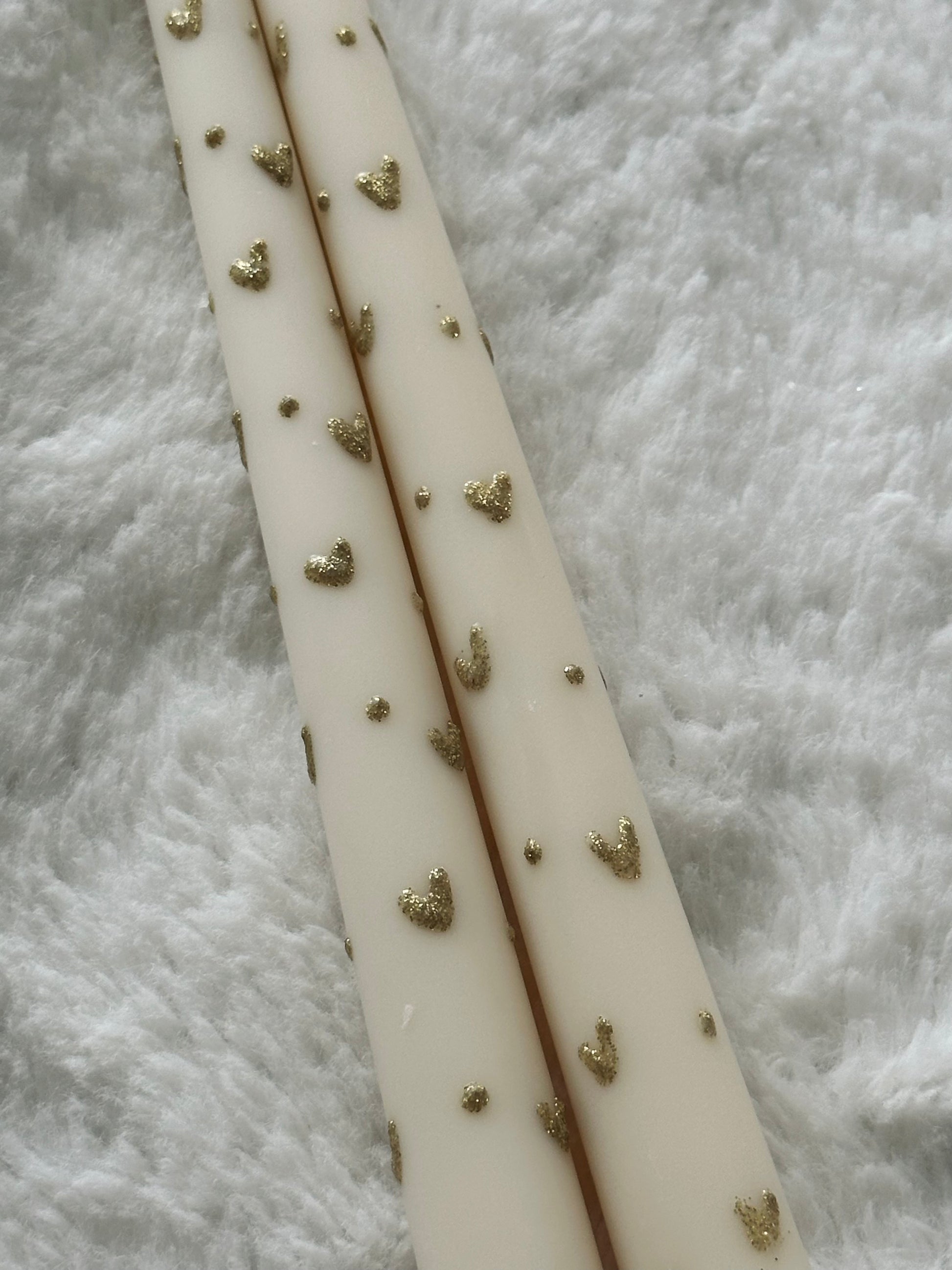 "Le Cierge" est fait de cire de Colza végétale, et est constitué de motifs faits mains en formes de coeurs ou de points ! Ils amènent brilliance et éclat ✨